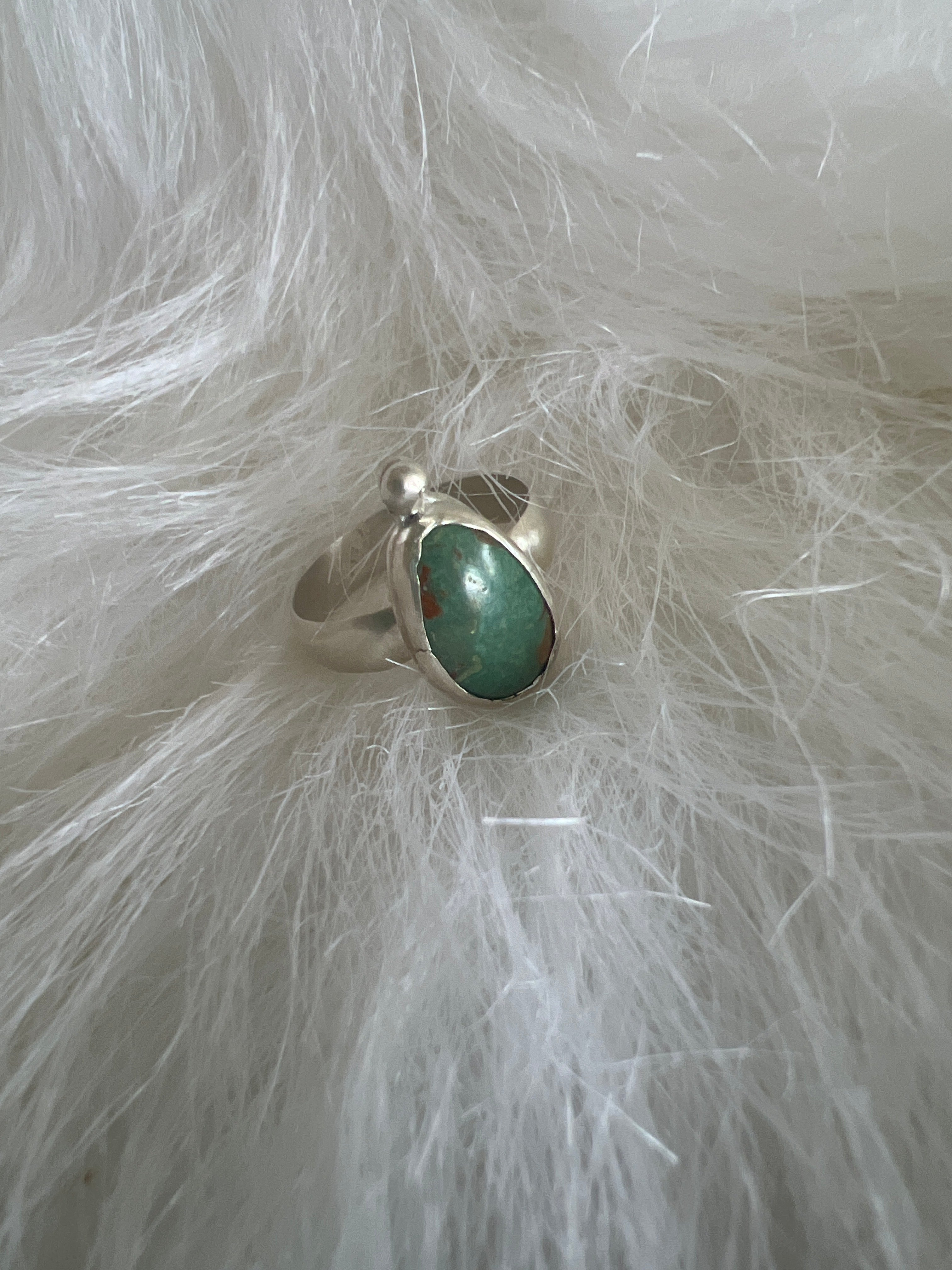 Turquoise stone with 1 ball embellishments. .925 Sterling silver. size: 7